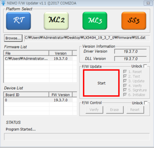 펌웨어 업데이트 프로그램(NemoFWU.exe) 실행