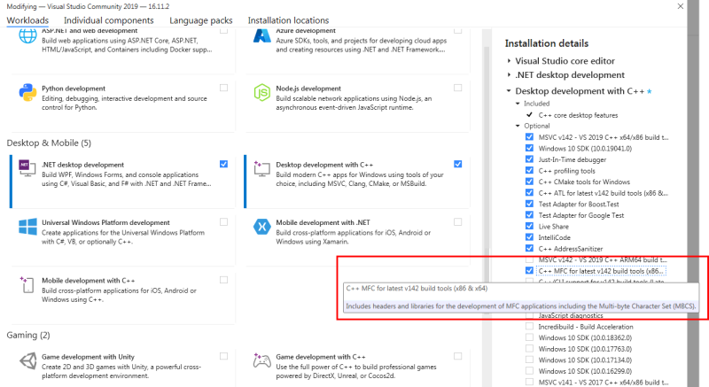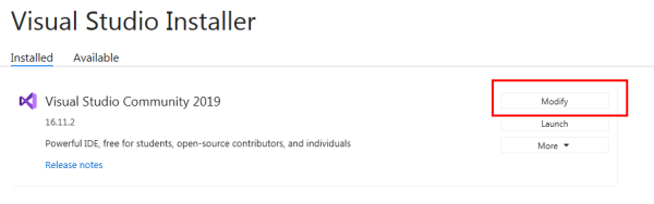 원본 보기토론이전 판역링크책에 추가PDF로 내보내기맨 위로 목차 1. Visual Studio Installer 2. MFC 선택 책 생성기 내 책으로 이 페이지 추가 책 생성기 내 책에서 이 페이지 제거 책 관리(0 페이지) 도움말 MFC 셋업 × Visual Studio 사용시 MFC 설치하는 방법에 대한 안내 페이지 입니다. 1. Visual Studio Installer Visual Studio 설치 후, Visual Studio Installer 실행 후 Modify를 클릭합니다. 2. MFC 선택 v숫자 빌드 도구용 C++ MFC 체크 및 다운로드 진행