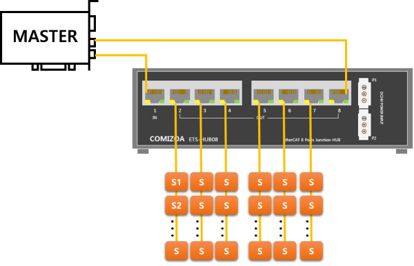 원본 보기토론이전 판역링크책에 추가PDF로 내보내기맨 위로 목차 링(이중화) + 트리 링 + 트리 구성 책 생성기 내 책으로 이 페이지 추가 책 생성기 내 책에서 이 페이지 제거 책 관리(0 페이지) 도움말 링(이중화) + 트리 × Master Device의 이중화 구성에 대한 안내 페이지입니다. 링 + 트리 구성 Ring Topology 에 Hub를 추가할 수 있습니다. Hub 에 연결되는 슬레이브는 Tree로 구성 가능합니다. 1), 2) 위치에 통신 문제 발생 시, 모든 슬레이브에 대해 정상적으로 통신합니다. 3) 위치에 통신 문제 발생 시, S1 ~ Sn 모듈은 Disconnect 됩니다.