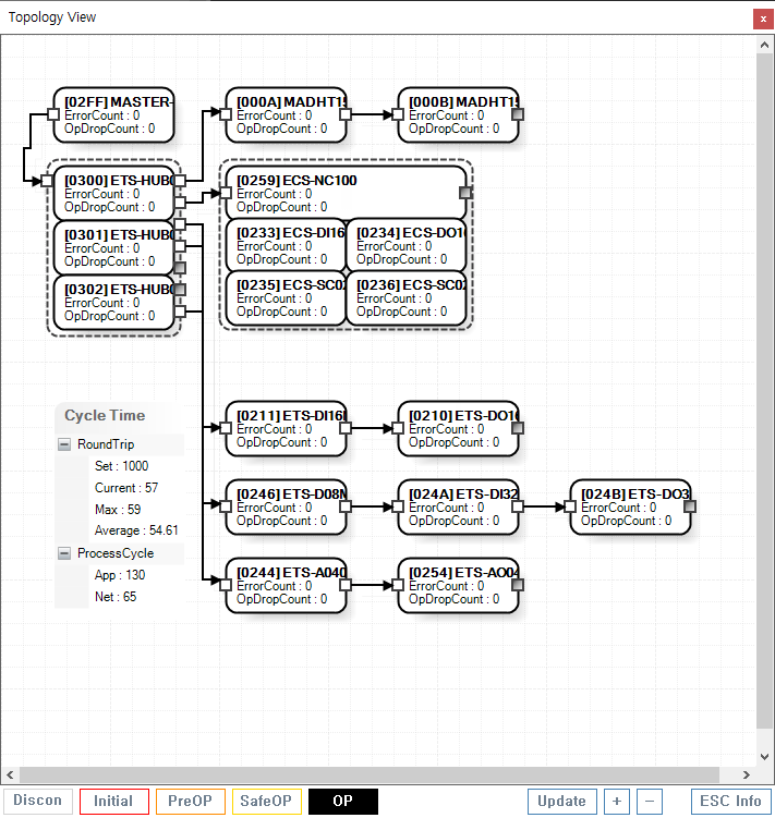원본 보기토론이전 판역링크책에 추가PDF로 내보내기맨 위로 목차 AlStatus 설정 및 확인 AlStatus 책 생성기 내 책으로 이 페이지 추가 책 생성기 내 책에서 이 페이지 제거 책 관리(0 페이지) 도움말 AlStatus 설정 및 확인 × AlStatus 관련 안내 페이지입니다. AlStatus 전체적인 연결 구조와, 통신상태를 확인할 수 있습니다. 하단의 AlStatus 버튼을 클릭하여, Master의 AlStatus 명령을 설정할 수 있습니다. 각 슬레이브는 테두리 색을 통해 AlStatus를 표시합니다.