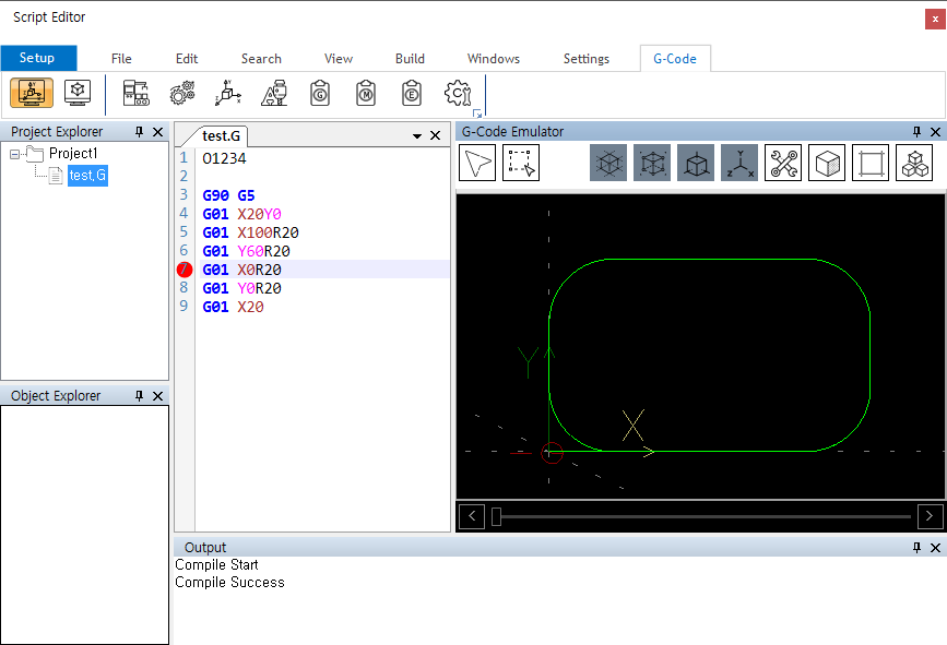 원본 보기토론이전 판역링크책에 추가PDF로 내보내기맨 위로 목차 Intro 시작하기 책 생성기 내 책으로 이 페이지 추가 책 생성기 내 책에서 이 페이지 제거 책 관리(0 페이지) 도움말 Scripter × Scripter에 대한 소개 페이지입니다. Intro ComiIDE에서 지원하는 Editor로 다음의 기능을 지원합니다. G-Code 작성, 수정, Compile, Debug, Simulation, Emulator C#, Visual Basic 작성, 수정, Compile XML Viewer 시작하기 ComiIDE 실행 - Main - Tool II - Scripter 클릭