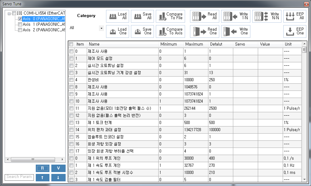 원본 보기토론이전 판역링크책에 추가PDF로 내보내기맨 위로 목차 ServoTunes란 시작하기 책 생성기 내 책으로 이 페이지 추가 책 생성기 내 책에서 이 페이지 제거 책 관리(0 페이지) 도움말 ServoTunes × ServoTunes에 대한 소개 페이지입니다. ServoTunes란 ServoTunes는 Network 방식 서보의 파라메타를 편집하기 위해 제공되는 툴로써, 다음의 특징을 가집니다. 별도의 배선 불필요 1:1 / 1:N / N:N 방식의 저장방식 지원 프로젝트 파일 save / load 지원 : 모든 서보의 파라메타를 하나의 파일로 관리 10진수 보기 / 16진수 보기 지원 파라메터 비교 기능 지원 일부 제품의 MotionIO 기능 할당 및 로직 변경 지원 시작하기 ComiIDE 의 Main tab에서 Servo 클릭 comizoa, 커미조아, ide, ethercat, 기능, servotunes, 서보튠즈, 소개 comizoa 커미조아 ide ethercat 기능 servotunes 서보튠즈 소개