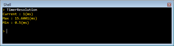 원본 보기토론이전 판역링크책에 추가PDF로 내보내기맨 위로 목차 Timer Resolution 확인 Timer Resolution 설정 책 생성기 내 책으로 이 페이지 추가 책 생성기 내 책에서 이 페이지 제거 책 관리(0 페이지) 도움말 Winodws Timer Resolution × Winodws Timer의 Resolution을 확인하거나 변경하는 방법에 대한 안내 페이지입니다. Timer Resolution 확인 Shell 실행 ( Shell 실행 참조) TimerResoluition 입력 Timer Resolution 설정 TimerResolution(설정값) 입력 TimerResolution(0.5) TimerResolution 확인 comizoa, 커미조아, ide, shell, 기능, timer, resolution, 15.6, delay comizoa 커미조아 ide shell 기능 timer resolution 15.6 delay