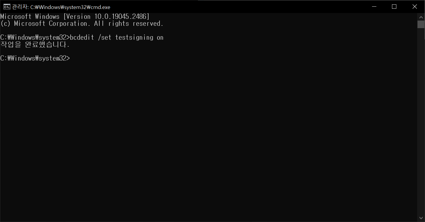 원본 보기토론이전 판역링크책에 추가PDF로 내보내기맨 위로 책 생성기 내 책으로 이 페이지 추가 책 생성기 내 책에서 이 페이지 제거 책 관리(0 페이지) 도움말 드라이버 Testsigning × 드라이버 testsigning 방법에 대한 안내 페이지입니다. Windows 7 이후 Microsoft Sign을 거치지 않고 업체 자체 서명만 받은 커널 모드 드라이버는 Windows Testsigning 옵션을 켜지 않은 상태에서는 설치되지 않도록 변경되었습니다. https://learn.microsoft.com/ko-kr/windows-hardware/drivers/install/the-testsigning-boot-configuration-option 서명되지 않은 임시 버전 설치시(배포시 TestSigned 표기) 아래 설정을 참고해 드라이버를 설치해 주시기 바랍니다. 1 CMD 창 관리자권한으로 실행 실행(윈도우키 + R) - cmd 입력 - 관리자권한 실행(컨트롤키 + Shift키 + Enter키) 2 Testsigning 명령어 입력 bcdedit /set testsigning on 3 PC 재부팅 4 바탕화면 오른쪽 하단의 Testsigning 메시지 확인