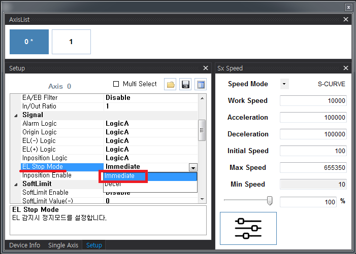 원본 보기토론이전 판역링크책에 추가PDF로 내보내기맨 위로 목차 센서 감지 후 즉시 정지하지 않는 경우 Case 1 Case 2 책 생성기 내 책으로 이 페이지 추가 책 생성기 내 책에서 이 페이지 제거 책 관리(0 페이지) 도움말 센서 감지 후 즉시 정지하지 않는 경우 × Limit(EL)센서가 감지되어도 즉시 정지하지 않는 경우에 대한 안내 페이지입니다. Case 1 Cause EL의 정지모드를 “감속 후 정지” 방식으로 설정하지 않았는지 체크하십시오. 그러한 경우에는 EL센서가 감지되면 감속 후 정지하기 때문에 감속하는 동안에는 모터가 구동됩니다. Solution EL의 정지모드를 “즉시정지” 방식으로 설정 Case 2 Cause 서보모터를 사용하는 경우 서보드라이버의 반응속도가 너무 느린 경우에도 이러한 현상이 발생될 수 있습니다. 모션컨트롤러의 명령은 중지되었으나 반응속도가 느린 서보드라이버는 Feedback이 아직 Command에 미치지 않았기 때문에 이미 출력된 Command Position까지 계속 제어하게 됩니다. Solution 서보드라이버의 게인을 조정하여 응답성을 높입니다.