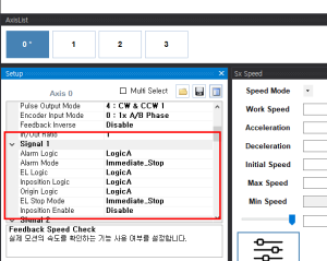 원본 보기토론이전 판역링크책에 추가PDF로 내보내기맨 위로 목차 증상 원인 해결법 책 생성기 내 책으로 이 페이지 추가 책 생성기 내 책에서 이 페이지 제거 책 관리(0 페이지) 도움말 B접점으로 센서를 사용해 셋업 진행할 때 축이 움직이지 않는 경우 × B접점으로 센서를 설정하고 축을 이송할 때 이송이 안되는 경우에 대한 안내 페이지 입니다 증상 사용하는 센서의 접점 타입이 B접점인 경우 해당 축이 이송명령을 내려도 움직이지 않음. 원인 커미조아 마스터보드의 기본 접점 인식 설정은 A접점 방식 해당 센서에서 B접점에 해당하는 신호를 마스터보드에 전달하지만 마스터보드에선 A접점 방식이라고 생각해 EL 위치에 있다고 판단, 이송명령을 수행하지 않음. 해결법 SW매뉴얼 참고해 해당 축의 접점 방식을 B로 변경 ComiIDE로 테스트하는 경우 축의 Setup1)에서 접점 변경하는 항목2)에서 접점 설정 변경 가능 1) 2)