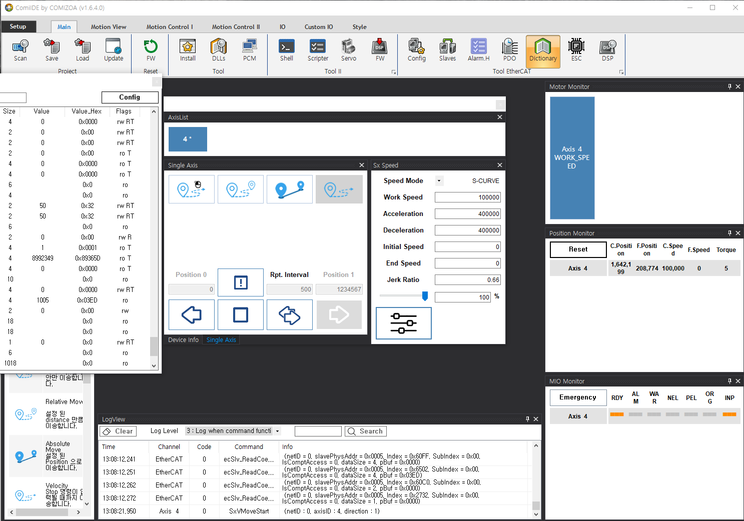 원본 보기토론이전 판역링크책에 추가PDF로 내보내기맨 위로 목차 토크 제한 설정 1. Configurator에서 Download후 Dictionary 2. SDO 내에서 Torque Limit 설정 책 생성기 내 책으로 이 페이지 추가 책 생성기 내 책에서 이 페이지 제거 책 관리(0 페이지) 도움말 문서의 이전 판입니다! 토크 제한 설정 × 토크 제한 (Torque Limit) 설정에 대한 안내페이지입니다. [야스카와 서보 사용] 1. Configurator에서 Download후 Dictionary Config→ Download 후 Main에서 Dictionary 클릭 2. SDO 내에서 Torque Limit 설정 해당 서보 내의SDO에서 Torque Limit 관련 설정 찾기 해당 Value 더블 클릭. Value 값 수정 후 enter. * 단축 이송 시 외부적인 힘을 가해 Limit이 설정한 값으로 올라오는지 확인 * Torque Limit 설정이 없거나 서보의 다른 기능으로 Torque Limit과 비슷한 제어를 할 시, 해당 서보 업체에 확인 필요. (Ex: 웰콘 서보 = Maximum Current)