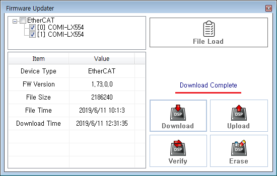 원본 보기토론이전 판역링크책에 추가PDF로 내보내기맨 위로 목차 FW Update 책 생성기 내 책으로 이 페이지 추가 책 생성기 내 책에서 이 페이지 제거 책 관리(0 페이지) 도움말 FW Update × 펌웨어 업데이트에 대한 안내 페이지입니다. 1 FW 버튼을 클릭하여 Firmware Manager 실행 2 왼쪽 화면에서 현재 설치된 FW 확인 Device Tree에서 Device 선택 시 선택 된 Device의 FW 정보 표시 3 File Load 버튼을 클릭하여 Firmware File 선택 4 “File Load Complete” 메세지 확인 후 Download 버튼을 클릭하여 Download 진행 5 “Download Complete” 메세지 확인 후 종료 × 업데이트 완료 후 펌웨어를 재부팅 시켜야 업데이트 된 펌웨어로 동작합니다. 반드시 PC를 완전 종료 한 후 다시 부팅시키시기 바랍니다.