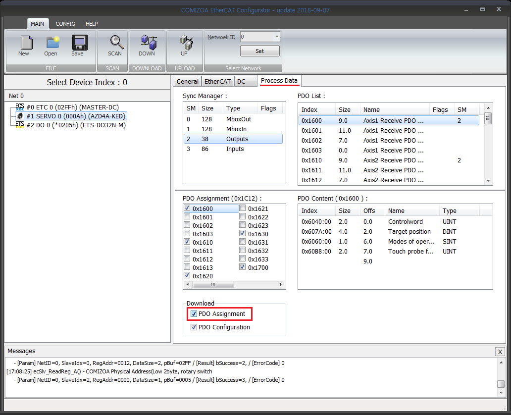 원본 보기토론이전 판역링크책에 추가PDF로 내보내기맨 위로 목차 OP 전환 실패 AlStatus Error Address 변경 Configuration 결과 파일 참조 실패 Empty Slot SyncManager Disabled Object PDO Assign Failed SlaveListMode 책 생성기 내 책으로 이 페이지 추가 책 생성기 내 책에서 이 페이지 제거 책 관리(0 페이지) 도움말 OP 전환 실패 × AlState가 OP-State로 전환되지 않는 경우에 대한 안내 페이지입니다. AlStatus Error 일부 Slave가 OP 전환이 안되는 경우, Al Status Error를 통해 원인을 확인할 수 있습니다. 대표적인 사례는 다음과 같습니다. Address 변경 배경 Slave의 Address 변경 후, 전원 재투입 안함 원인 Slave의 Address 변경값은 Slave의 전원 인가 후 초기화 과정에 적용됨 전원 재투입을 안하는 경우, EtherCAT Master가 알고 있는 Address1)와 Slave의 주소2)가 달라짐 해결방안 Slave 전원 재투입 Configuration 결과 파일 참조 실패 배경 x64 OS 환경에서 'ComiECatConfig_x64'로 Configuration을 진행하고 재부팅 후 x86 Application 을 실행하는 경우 원인 x64 OS 환경에서 'ComiECatConfig_x64'로 Configuration을 진행하는 경우, CEcatNetCfg_#_#.cec3)이 C:\Windows\System32 폴더에 생성 재부팅 후 x86 Application 실행 시 c:\Windows\SysWow64 폴더 참조 x64 Application 실행 시 C:\Windows\System32 참조 Configuration 정보와 실제 정보가 맞지 않아 OP 전환 실패 Configuration 정보는 최초 DeviceLoad 시에 Master Device로 Load 되므로 재부팅 이후 x64 Application이 최초 실행 된 경우, 이후에는 x86 Application이 실행되어도 정상 동작 해결방안 ComiIDE를 이용하여 Configuration 진행. 또는 'ComiECatConfig_x86'를 이용하여 Configuration 진행. 또는 'ComiECatConfig_x64'를 이용하여 Configuration 진행. 이후 'CEcatNetCfg_#_#.cec' 파일을 c:\Windows\SysWow64 에서 C:\Windows\System32로 복사 Empty Slot 원인 MDP Type Slave에서 Slot에 Module을 추가하지 않음 해결방안 Slot에 Module 추가 SyncManager Disabled SyncManager Disabled SyncManager가 Enable이 아님 해결방안 LS MECAPION : SafeOP 전환 실패 Object PDO Assign Failed 원인 PDO Assign 이 되지 않음 해결방안 EcatConfig 에서 PDO Assignment 체크. 또는 xml 수정 : PdoAssign=“0” → PdoAssign=“1” SlaveListMode 배경 ComiEcatConfig 프로그램을 통해서 스캔 후 다운로드했는데, 일부 슬레이브들이 OP모드로 전환되지 않거나 마스터가 죽는 현상 발생 원인 EcatConfig(2016/03/07) 또는 이전 버전에서 SlaveListMode를 “주소순”으로 정렬 후 다운로드 다운로드는 주소순으로 Addressing 했으나, Scan 시에는 Index순으로 읽음 해결방안 'ComiIDE'를 이용하여 Configuration 진행. 또는 2016/03/07 이후 버전의 EcatConfig사용. 또는 2016/03/07 이후 버전 사용 시 'EcatConfig' 사용 시 “연결순”으로 정렬 후 다운로드 1) 변경 이후 주소 2) 변경 이전 주소 3) Configuration 결과 파일