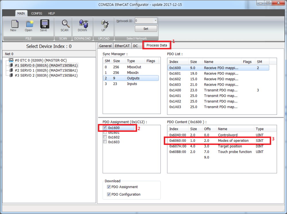 원본 보기토론이전 판역링크책에 추가PDF로 내보내기맨 위로 목차 Case 1 이더캣, 홈복귀, homing, 에러 홈복귀(드라이버 제공) 시작 실패 × 드라이버에서 제공하는 홈복귀 모드 사용시 홈복귀가 시작되지 않는 경우에 대한 안내 페이지입니다. Case 1 Cause 드라이버에서 제공하는 홈복귀 모드 사용 시, 마스터는 드라이버의 Operation Mode 를 Homming Mode 로 변경한 후 홈복귀 시작 명령 전달 이 때, Operation Mode는 PDO의 “Mode of Operation” Object를 통해 변경. PDO에 “Mode of Operation”이 포함되어 있지 않으면, Operation Mode가 변경되지 않아 홈복귀가 시작되지 않음. Solution Mode of Operation이 포함된 PDO 맵 사용 Mode of Operation이 포함된 맵은 Configuration 과정에서 PDO Assignment를 통해 선택 가능 일반적으로 SyncManager - Output 을 바꾸면, Input 도 함께 변경1) 1) Output의 PDO Assignment를 0x1600 으로 변경하면 Input의 PDO Assignment는 0x1A00 으로 변경 이더캣 홈복귀 homing 에러