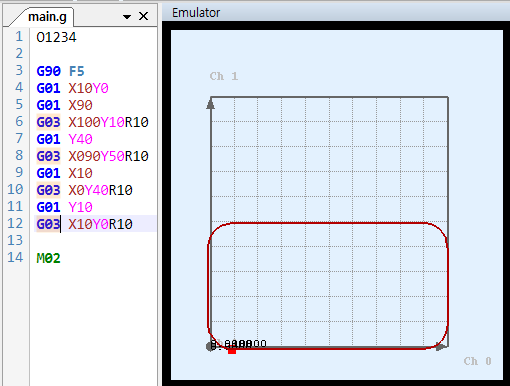 원본 보기토론이전 판역링크책에 추가PDF로 내보내기맨 위로 목차 G02, G03 (원호보간이송) Summary Format Example 책 생성기 내 책으로 이 페이지 추가 책 생성기 내 책에서 이 페이지 제거 책 관리(0 페이지) 도움말 G02, G03 (원호보간이송) × G02, G03 코드에 대한 상세 안내페이지입니다. Summary 지령된 위치까지 원호보간으로 이송 합니다. G02 : 시계 방향 이송 G03 : 반시계 방향 이송 두 가지 방식의 위치 명령을 지원합니다. 종점과 반지름 종점과 원호 중심점 속도는 설정된 F 값입니다. 새로 지령할때까지 유효한 Modal 코드이므로 매번 지령할 필요는 없습니다. 단위는 설정값에 따라 달라지며, 기본값은 mm/sec 입니다. Format G02 X_Y_R_F_ X : 원호 종점의 X 좌표 Y : 원호 종점의 Y 좌표 Z : 원호 종점의 Z 좌표 R : 원호 반경 F : 이송속도 (Feed Rate) G02 X_Y_I_J_F_ X : 원호 종점의 X 좌표 Y : 원호 종점의 Y 좌표 Z : 원호 종점의 Z 좌표 I : 원호 시점에서 원호중심점까지의 X축 거리와 방향 J : 원호 시점에서 원호중심점까지의 Y축 거리와 방향 K : 원호 시점에서 원호중심점까지의 Z축 거리와 방향 F : 이송속도 (Feed Rate) Example R (반지름) 사용 시 I,J,K (중심점까지의 거리, 방향) 사용 시 R과 I,J,K 가 함께 쓰이는 경우, 먼저 설정된 값은 무시됩니다.