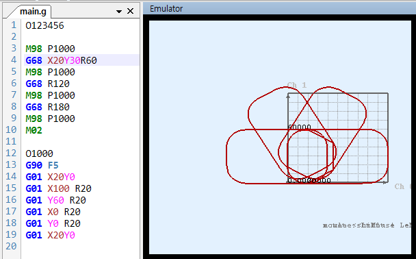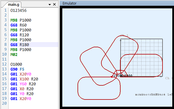 원본 보기토론이전 판역링크책에 추가PDF로 내보내기맨 위로 목차 G68 / G69 (좌표회전) Summary Format Example 책 생성기 내 책으로 이 페이지 추가 책 생성기 내 책에서 이 페이지 제거 책 관리(0 페이지) 도움말 G68 / G69 (좌표회전) Summary G68 : 좌표를 회전시킵니다. G69 : 좌표 회전을 취소합니다. Format G68 X_Y_R X, Y : 회전축의 중심좌표 R : 회전 각도 반시계방향 G69 Example 원점을 중심으로 60 / 120 / 180 도 회전 X20, Y30 좌표를 중심으로 회전