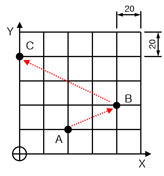 원본 보기토론이전 판역링크책에 추가PDF로 내보내기맨 위로 목차 G90 / G91 (절대 위치 / 상대 위치) Summary Format Example 책 생성기 내 책으로 이 페이지 추가 책 생성기 내 책에서 이 페이지 제거 책 관리(0 페이지) 도움말 G90 / G91 (절대 위치 / 상대 위치) × G90, G91 코드에 대한 상세 안내페이지입니다. Summary G90 : 원점을 기준으로 이동할 점의 X,Y,Z 축 좌표로 지령합니다. G91 : 원점을 기준으로 이동할 점의 X,Y,Z 축 이동량과 방향으로 지령합니다. 이후 입력되는 좌표값은 마지막 위치 기준 상대거리입니다. Modal 명령으로 다음 G90/G91 명령시까지 유효합니다. Format G90 G91 Example G90 (절대위치) A → B → C 로 이송 G90 G01 X80 Y40 G01 X0 Y80 G91 (상대위치) A → B → C 로 이송 G91 G01 X40 Y20 G01 X-80 Y40